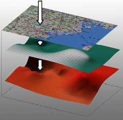 | 既存資料調査 地表踏査 空中写真判読 など、主に地表の情報 |